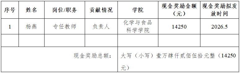 4.拟发放现金奖励金额合计14250元。